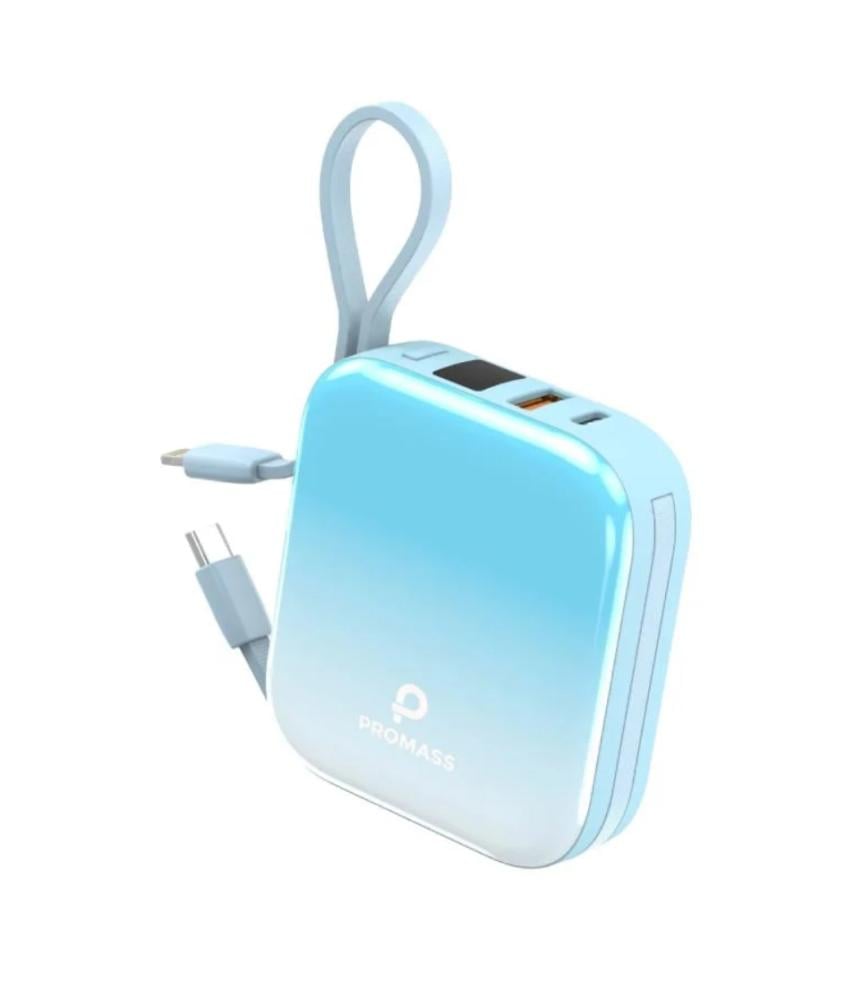 شاحن متنقل مع كيابل شحن مدمجة من نوع LIGHTNING ( أيفون ) + TYPE-C ( تايب سي ) - من ماركة PROMASS بسعة 10000 مللي امبير